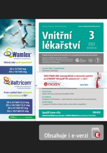 142 | VNITŘNÍ LÉKAŘSTVÍ www.casopisvnitrnilekarstvi.cz KAZUISTIKA / CASE REPORT Ruptúra voľnej steny myokardu ako komplikácia STEMI Myocardial free wall rupture as a complication of STEMI Lukáš Urban, Milan Dragula, Tomáš Bolek, Miloš Kňazeje, Matej Samoš - - - - - - - - - - - - - - - - - - - - - - 187 VE ZKRATCE / IN BRIEF Dyslipidemie a PCSK9 inhibitory – update indikačních a úhradových kritérií zaměřený prakticky Dyslipidemia and PCSK9 inhibitors – practical focused update of indication and reimbursement criteria Vladimír Soška 191 Incidentalom nadledviny Adrenal incidentaloma Tomáš Zelinka ADVERTORIAL / ADVERTORIAL Co spojuje SGLT2 inhibitory, diabetes mellitus, srdeční selhání a empagliflozin? What connects SGLT2 inhibitors, diabetes mellitus, heart failure and empagliflozin? Richard Češka - - - - - - - - - - - - - - - - - - - - - - - - - - - - - - - - - - - 195 PŘEDSTAVUJEME PRACOVNÍ SKUPINY EVROPSKÉ FEDERACE INTERNÍ MEDICÍNY (EFIM)/ WE PRESENT THE WORKING GROUPS OF THE EUROPEAN FEDERATION OF INTERNAL MEDICINE (EFIM) Ultrasound working group Zdeněk Monhart Nezapomněli jste si zajistit předplatné na rok 2022? PŘEHLEDOVÉ ČLÁNKY Novinky v biologické léčbě bronchiálního astmatu Probiotika v geriatrii Gestační diabetes mellitus – patofyziologie, možnosti prevence a léčba Novinky v léčbě hemo lie Aktuální možnosti léčby diabetu inkretinovými mimetiky Antihypertenziva centrálně působící a ovlivňující alfa-receptory (antihypertenziva 5. volby) – 2. část FARMAKOLOGICKÝ PROFIL Tofacitinib DOBRÁ RADA Vitamin D – kdy a proč vyšetřovat? PÍŠEME SPRÁVNĚ ANGLICKY ANEB ENGLISH OR CZENGLISH? Jazyková trojčlenka čili Člen určitý, neurčitý a nulový DIFERENCIÁLNĚ DIAGNOSTICKÉ OKÉNKO Diferenciální diagnostika pomalu progredujících kognitivních poruch ZAZNĚLO NA KONGRESE Vaskulární věk www.solen.cz | www.internimedicina.cz | ISSN 1212-7299 | Ročník 21 | 2019 Časopis je indexován v: Bibliographia Medica Čechoslovaca, EMBASE, Scopus, EBSCO. Interní medicína pro praxi 2019 5 POSLEDNÍ ČÍSLO V TÉTO PODOBĚ Vnitřní lékařství 2022 ROČNÍK 68 1 ISSN 0042-773X (print) / ISSN 1801-7592 (online) ČASOPIS ČESKÉ INTERNISTICKÉ SPOLEČNOSTI A SLOVENSKEJ INTERNISTICKEJ SPOLOČNOSTI Indexováno v: EMBASE/Excerpta Medica | SCOPUS | MEDLINE | Index Medicus | Bibliographia medica Čechoslovaca | Bibliographia medica Slovaca | Index Copernicus International | Chemical Abstracts | INIS Atomindex HLAVNÍ TÉMA: METABOLICKÝ SYNDROM Léčba hypertenze u metabolického syndromu – update 2019 Aterogenní dyslipidemie typické pro metabolický syndrom Diabetes mellitus 2. typu v praxi – balancování mezi rezistencí a sekrecí PŘEHLEDOVÉ ČLÁNKY Hepatotoxicita indukovaná bodybuilding suplementami Chronický stres, psychická nepohoda a deprese zvyšují četnost infekčních, autoimunitních, ale i maligních nemocí Sarkopenická obezita – aktuální přehled problematiky KAZUISTIKA Infarkt myokardu u pacienta s metabolickým syndromem a prokázaným syndromem obstrukční spánkové apnoe DIFERENCIÁLNĚ-DIAGNOSTICKÉ OKÉNKO ANEB NA CO SE VÁS MOHOU ZEPTAT U ATESTACE K čemu lze využít výsledek vyšetření koncentrace celkového cholesterolu? VE ZKRATCE Několik poznámek ze čtení posledních doporučených postupů pro léčbu DLP verze 2019 DOBRÁ RADA Jak motivovat pacienta ke změně životního stylu? Spojili jsme sí ly Interní medicína pro praxi a Vnitřní lékařství pod jednou hlavičkou www.casopisvnitrnilekarstvi.cz TIŠTĚNÝ ČASOPIS 8 čísel / rok 1200 Kč 8 čísel / rok 600 Kč (50% sleva) MLADÍ LÉKAŘI DO 35 LET Elektronická verze časopisu s dalšími články jako doplněk každého čísla na www.casopisvnitrnilekarstvi.cz O ciální časopis České internistické společnosti ČLS JEP a Slovenskej internistickej spoločnosti SLS