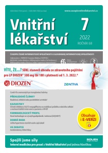 Vnitřní lékařství 2022 ROČNÍK 68 7 ISSN 0042-773X (print) / ISSN 1801-7592 (on-line) ČASOPIS ČESKÉ INTERNISTICKÉ SPOLEČNOSTI A SLOVENSKEJ INTERNISTICKEJ SPOLOČNOSTI Indexováno v: EMBASE.Excerpta Medica | SCOPUS | MEDLINE | Index Medicus | Bibliographia medica Čechoslovaca | Bibliographia medica Slovaca | Index Copernicus International | Chemical Abstracts | INIS Atomindex HLAVNÍ TÉMA: NEFROLOGIE Současné možnosti zpomalení progrese chronického onemocnění ledvin Expertní stanovisko ke spolupráci diabetologů a internistů s nefrology v péči o nemocné s chronickým onemocněním ledvin Glomerulonefritidy asociované s infekcemi Novinky v léčbě renální anémie – erytropoetin vs. inhibitory prolylhydroxylázy? Covid-19 u nemocných po transplantaci ledviny PŘEHLEDOVÉ ČLÁNKY Reaktivní, infekční nebo postinfekční artritida? KAZUISTIKY Účinek inhibitoru SGLT2 empagliflozinu na stabilizaci průběhu srdečního selhání s možností dalších intervencí u pacienta s HFrEF FARMAKOLOGICKÝ PROFIL Nové technologie ve vývoji hypolipidemik. Inclisiran (LEQVIO®) DOBRÁ RADA Léčba hypertenze starších osob a její úskalí VE ZKRATCE Incidentalomy štítné žlázy Spojili jsme sí ly Interní medicína pro praxi a Vnitřní lékařství pod jednou hlavičkou www.casopisvnitrnilekarstvi.cz Obsahuje i E VERZI VÍTE, ŽE...? SÚKL stanovil úhradu ze zdravotního pojištění pro LP DIOZEN® 500 mg tbl 180 s platností od 1. 3. 2022.*